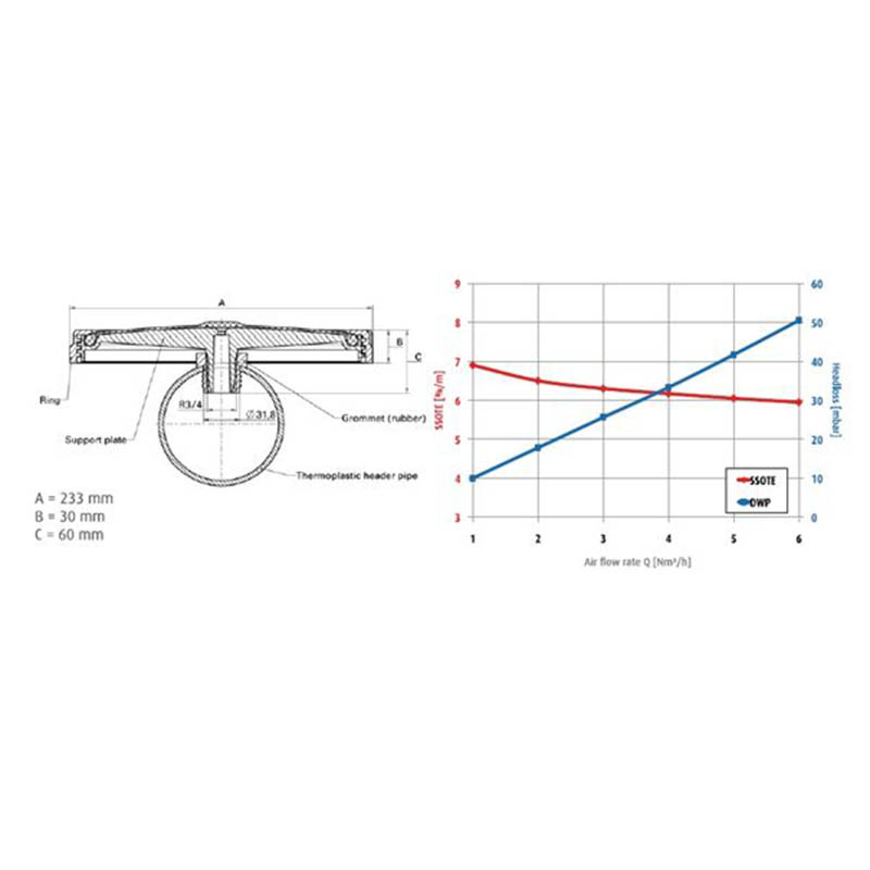 Dyfuzory talerzowe wyróżniają się w zasięgu podobnych produktów dzięki niezwykle niskiemu ciśnieniu otwarcia oraz bardzo małymi oporami przepływu dzięki temu warunki są komfortowe dla pracy dmuchaw napowietrzających ściek lub zbiorniki wodne i poprawia jego utlenienie. Minimalna obsługa czy też doskonałe wskaźniki pracy oraz długa żywotność i niskie koszty instalacji powodują że jest to bardzo ekonomiczne rozwiązanie.